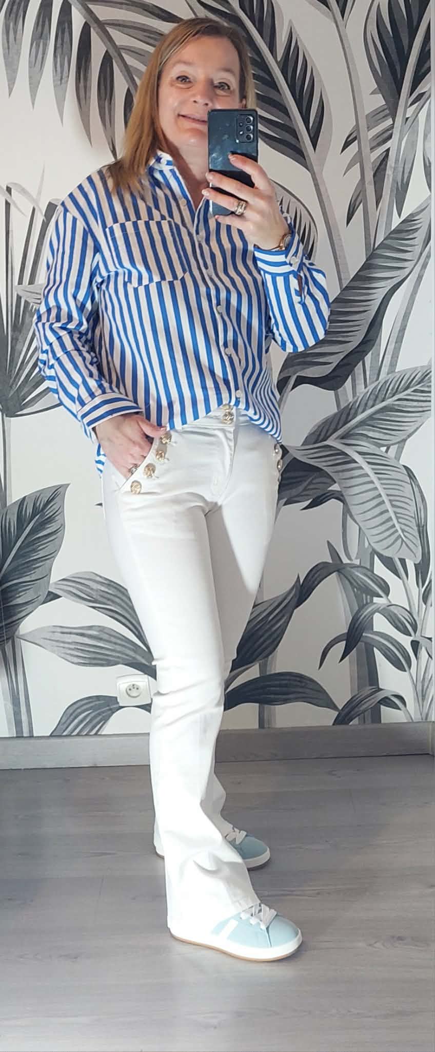 Chemisier élégant à Rayures pour Femme ,Col en Manches Longues , à la fois Élégante , Décontracté , pour Le Bureau, Le Travail avec 1 Poche.