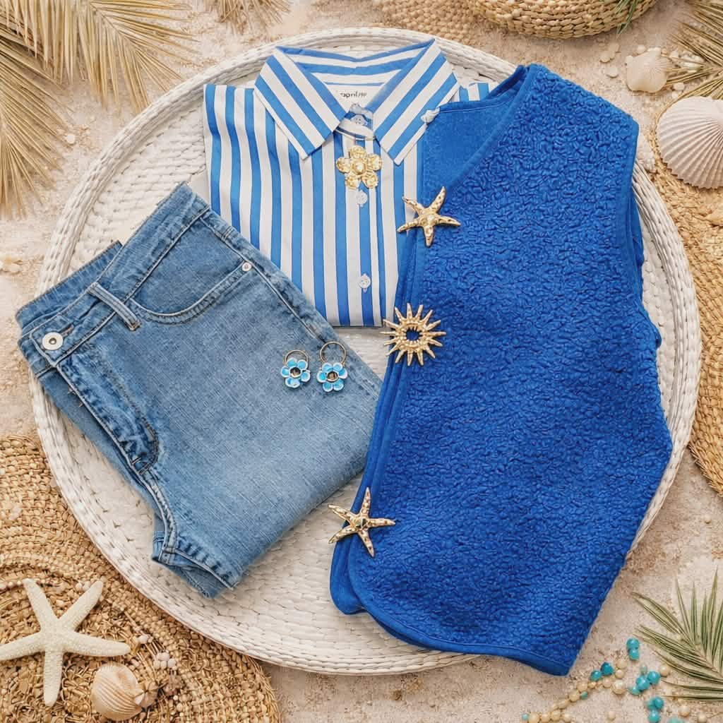 Gilet sans manches moutonné avec broche étoile de mer, et broche soleil, doux et agréable à porter